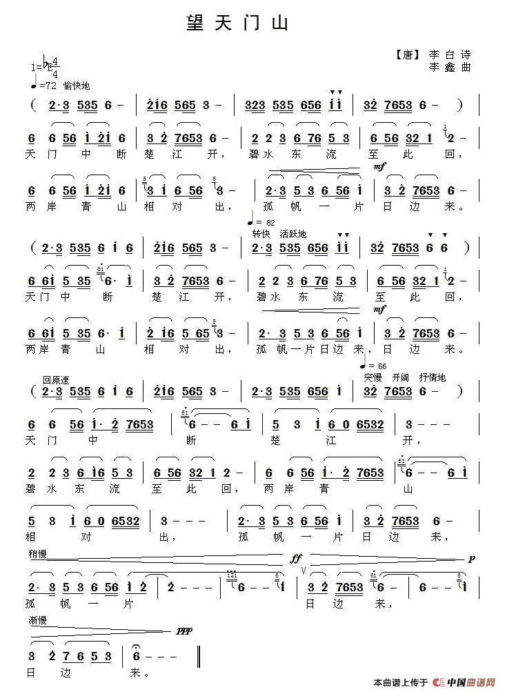 ![望天门山([唐]李白词 李鑫曲)(1)_原文件名:1.jpg](/Public/Uploads/2014/01/29/252e8af8eb0a73.jpg)