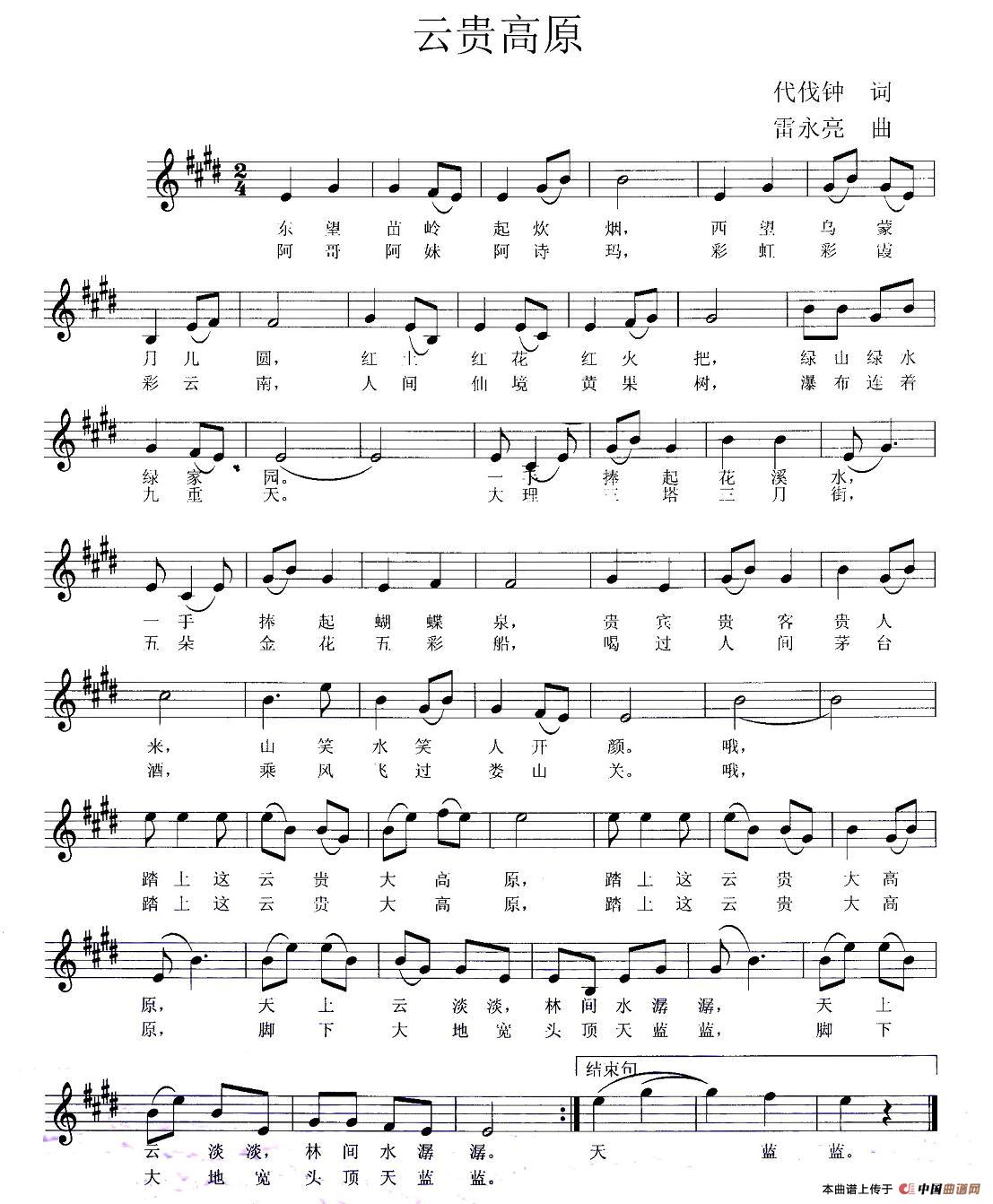 关于《云贵高原》曲谱的评论
