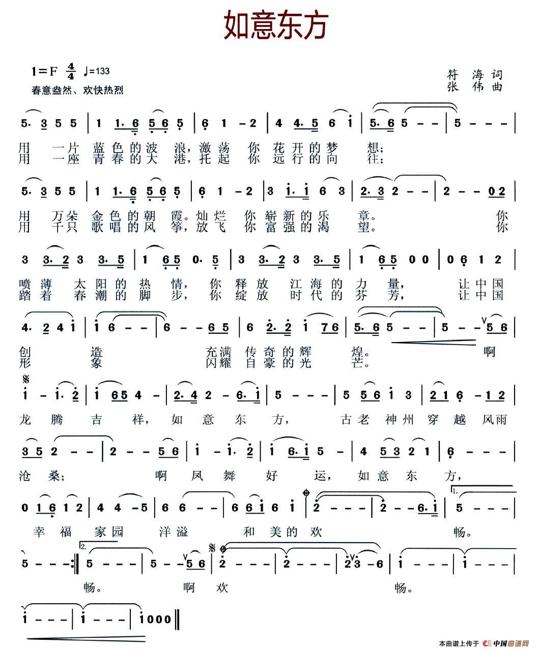 关于《如意东方》曲谱的评论
