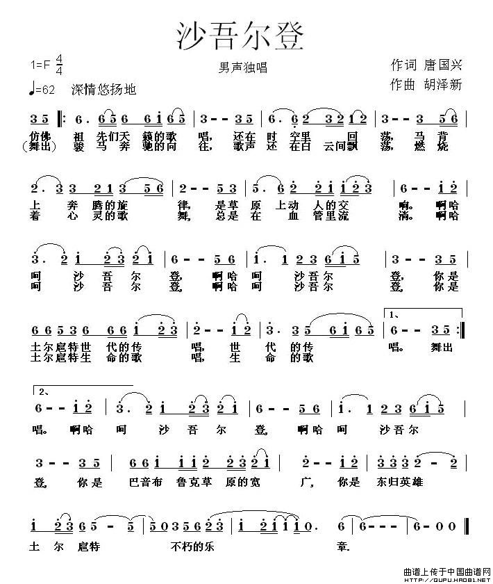 关于《沙吾尔登》曲谱的评论
