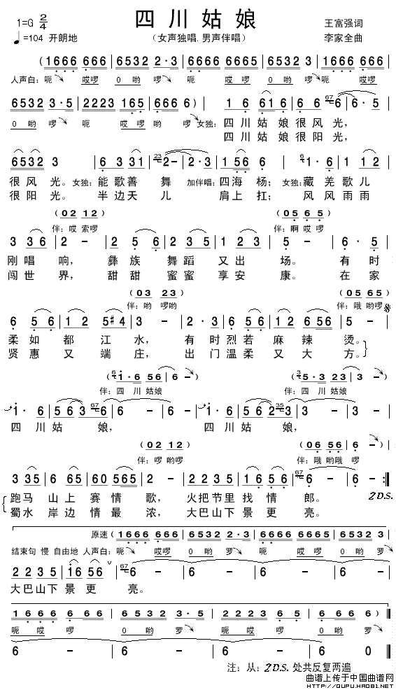四川姑娘(王富强词 李家全曲)