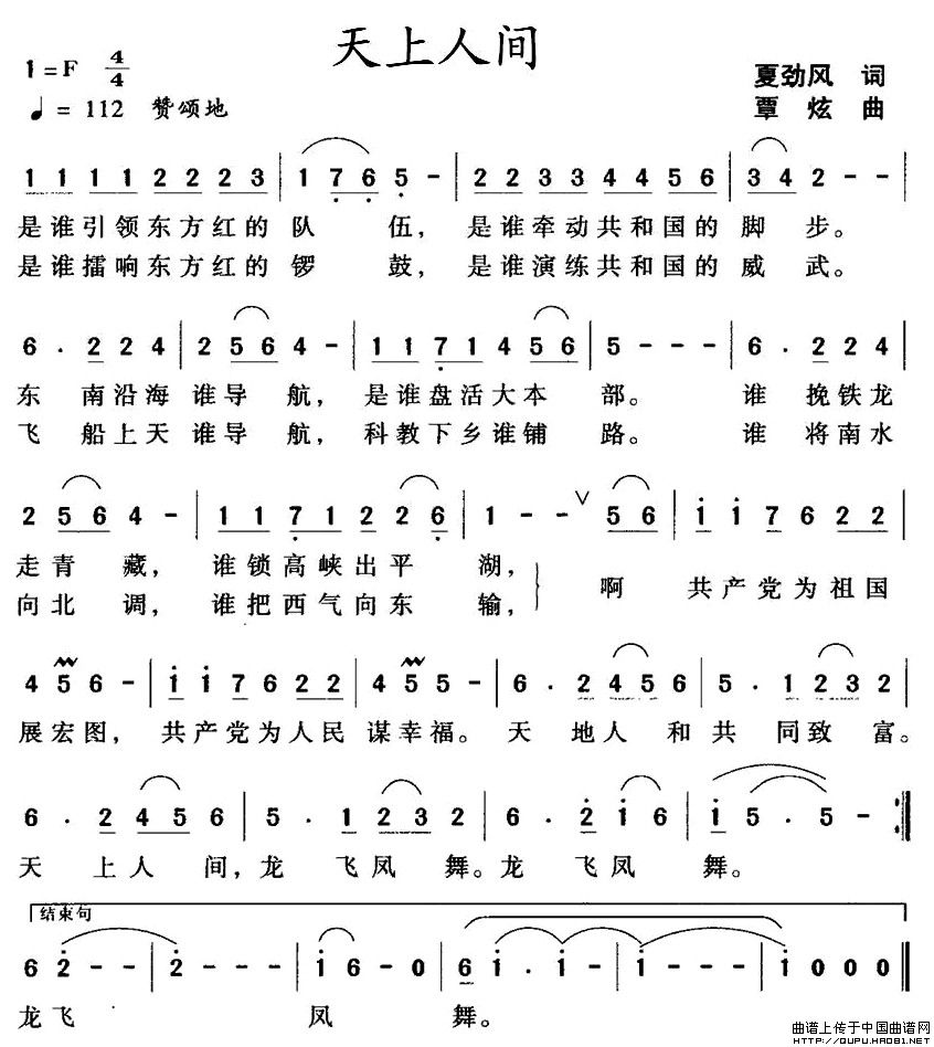 当前位置: 首页 民歌曲谱 四字歌名 天上人间(覃炫作曲)