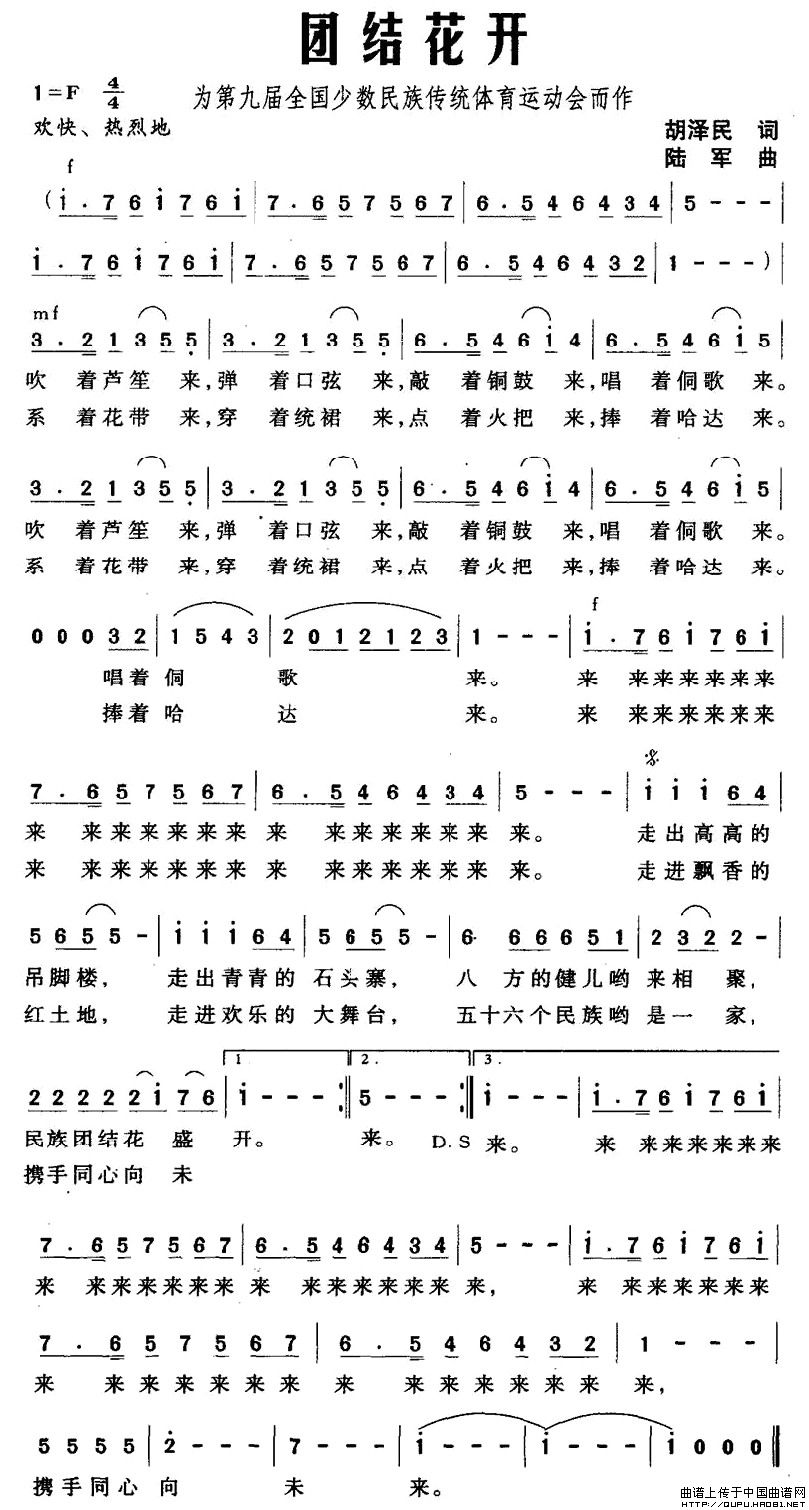 关于《团结花开》曲谱的评论