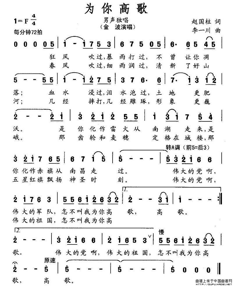 关于《为你高歌》曲谱的评论