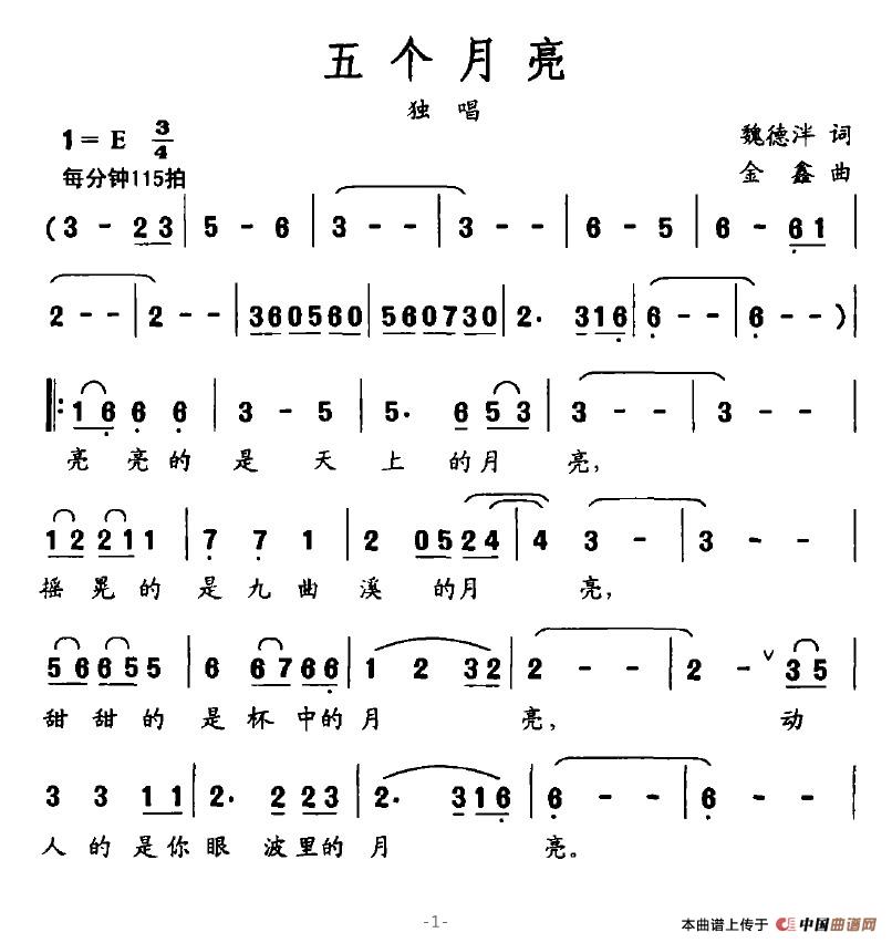五个月亮(魏德泮词 金鑫曲)(1)_原文件名:五个月亮1.jpg