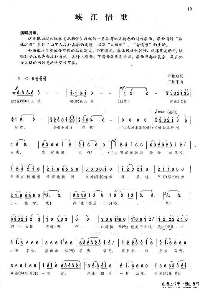 关于《峡江情歌》曲谱的评论