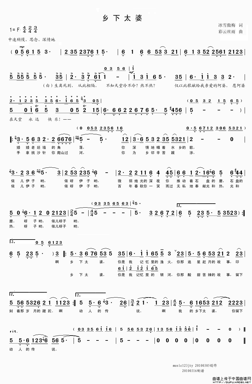 关于《乡下太婆》曲谱的评论