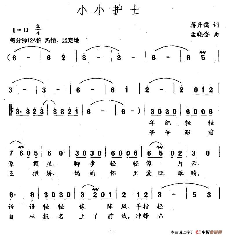 关于《小小护士》曲谱的评论