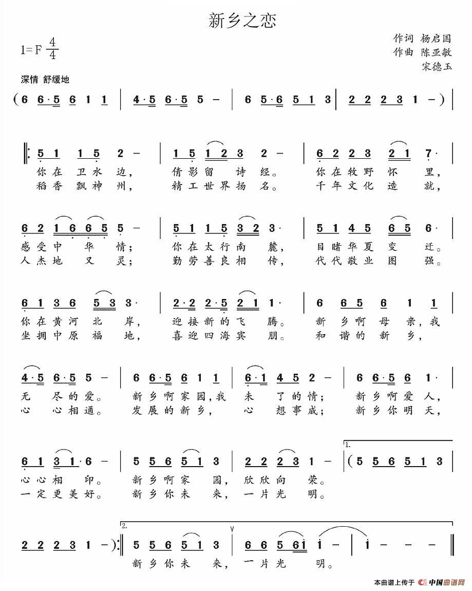 关于《新乡之恋》曲谱的评论