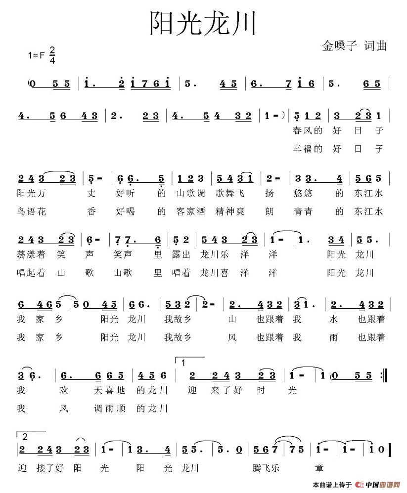 关于《阳光龙川》曲谱的评论