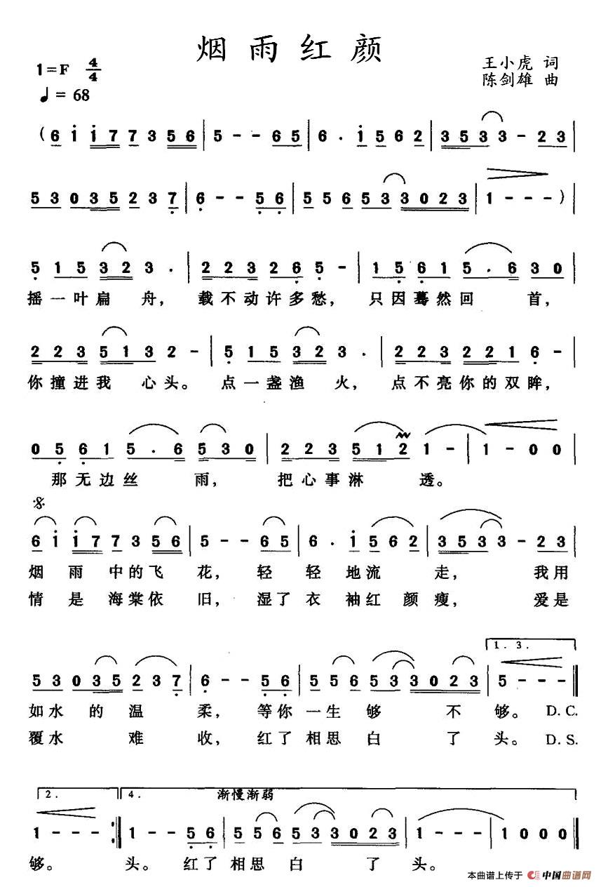 关于《烟雨红颜》曲谱的评论
