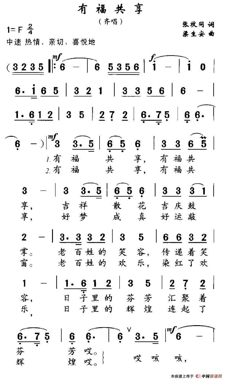 关于《有福共享》曲谱的评论