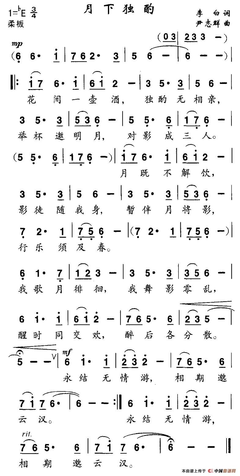 ![月下独酌([唐]李白词 尹志群曲)(1)_原文件名:2.jpg](/Public/Uploads/6/5/50de9928ca5c8.jpg)