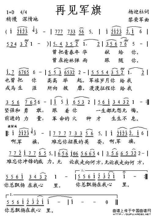 关于《再见军旗》曲谱的评论
