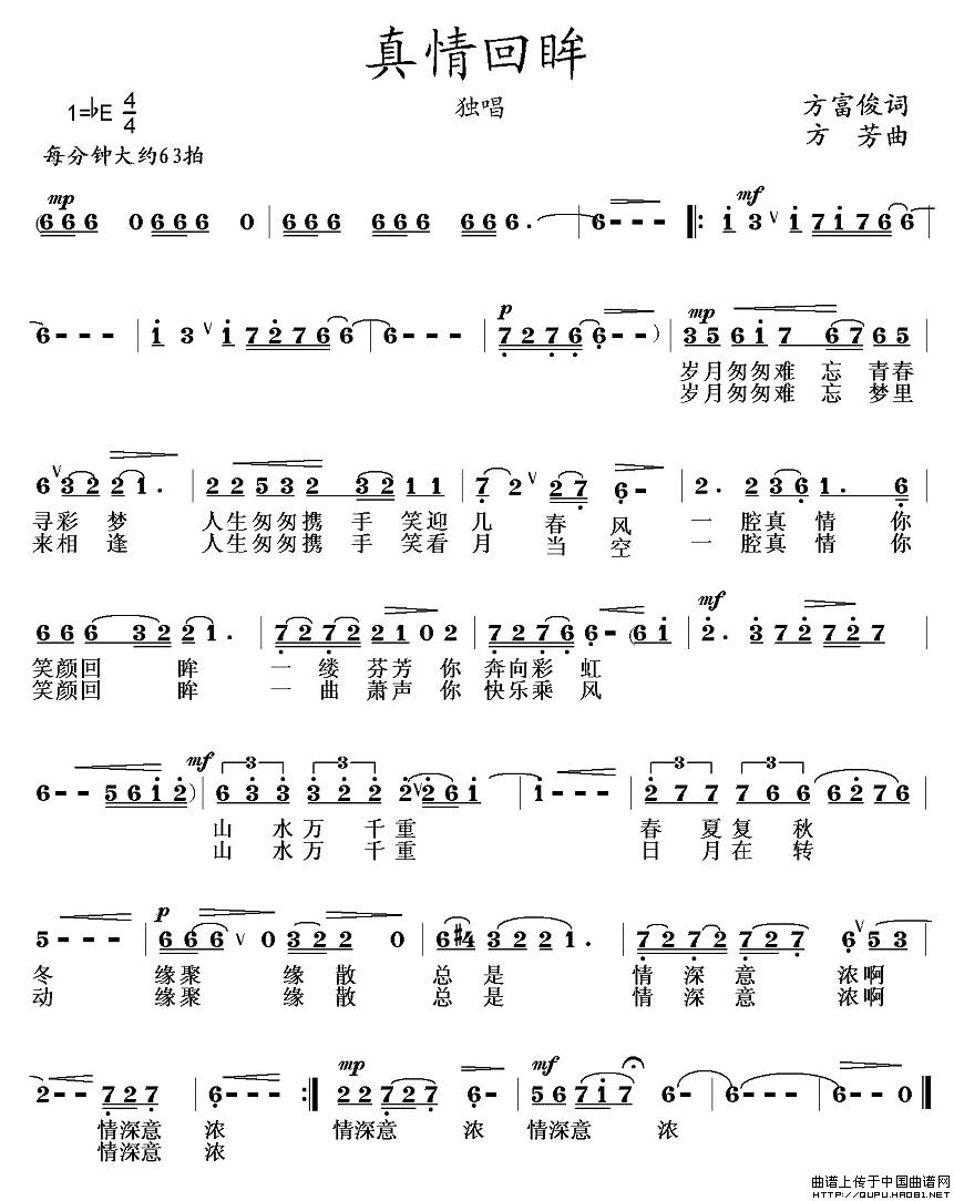 关于《真情回眸》曲谱的评论