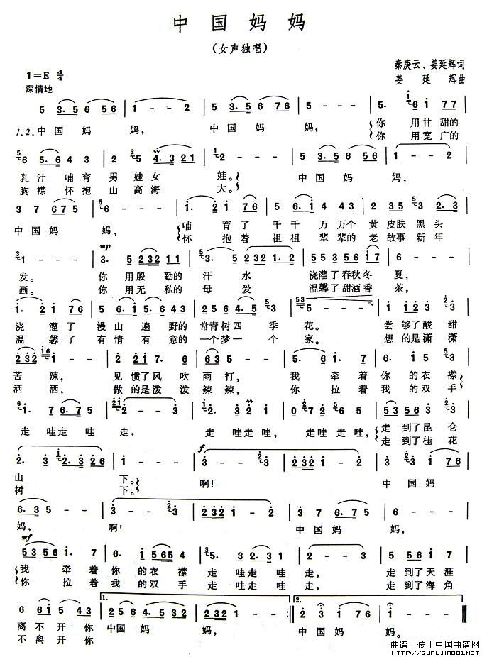 关于《中国妈妈》曲谱的评论