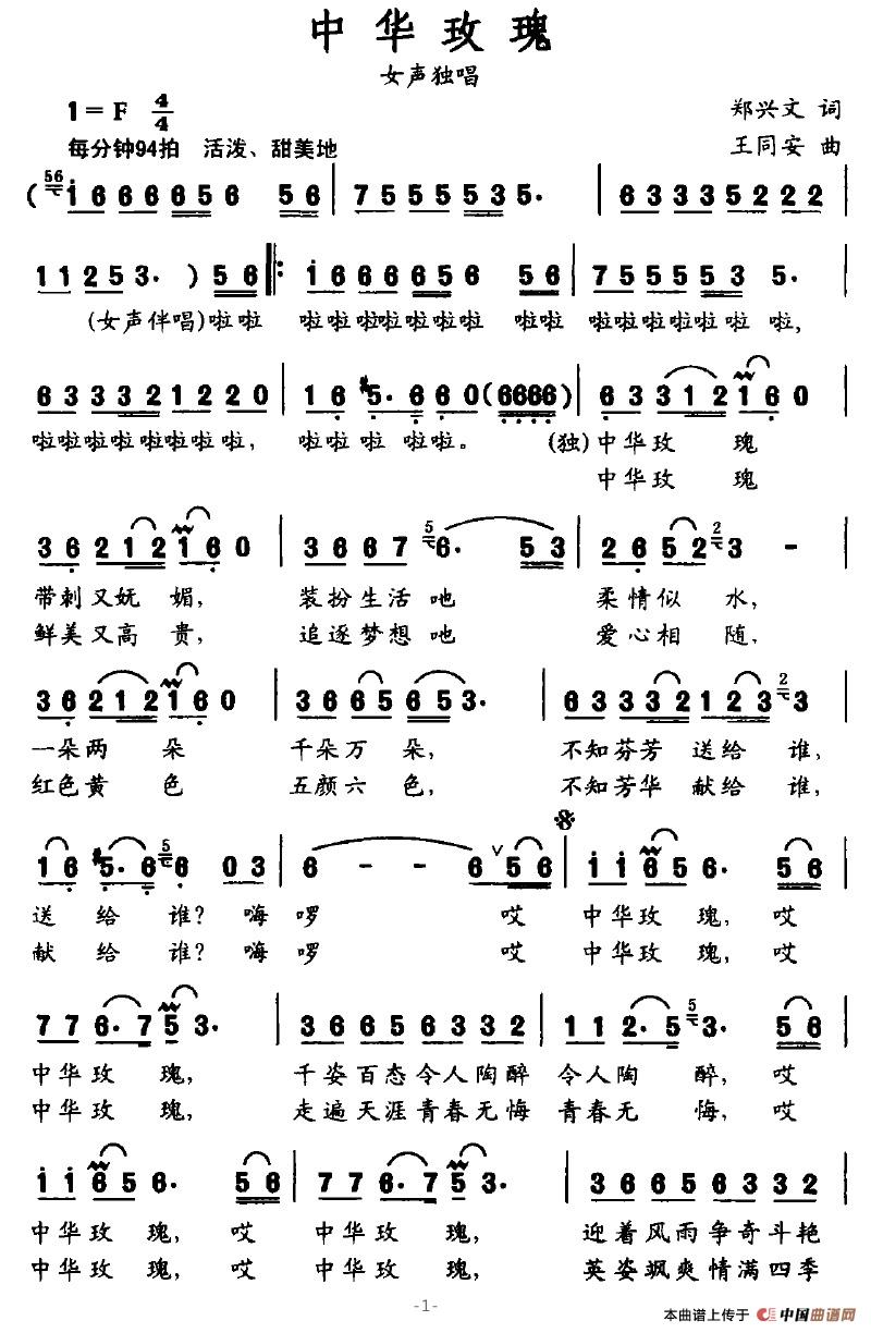 《中华玫瑰》文本歌词