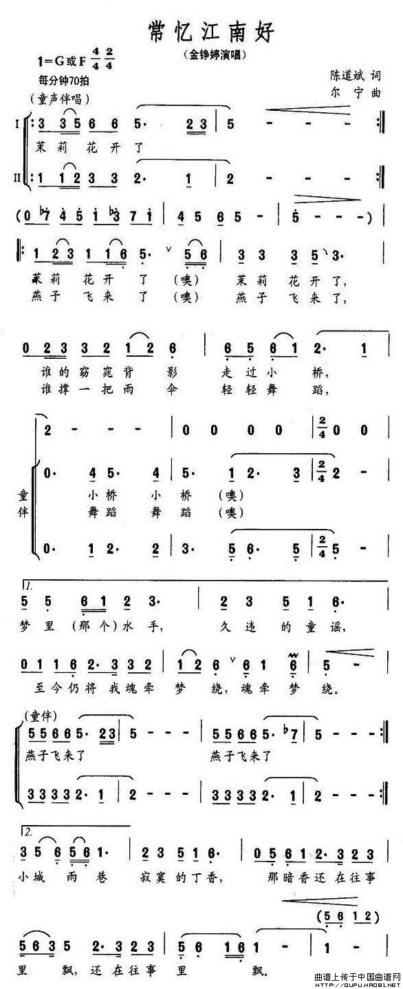 关于《常忆江南好》曲谱的评论