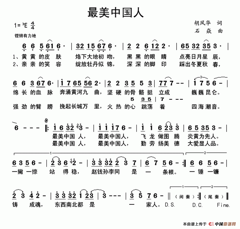 《最美中国人》文本歌词