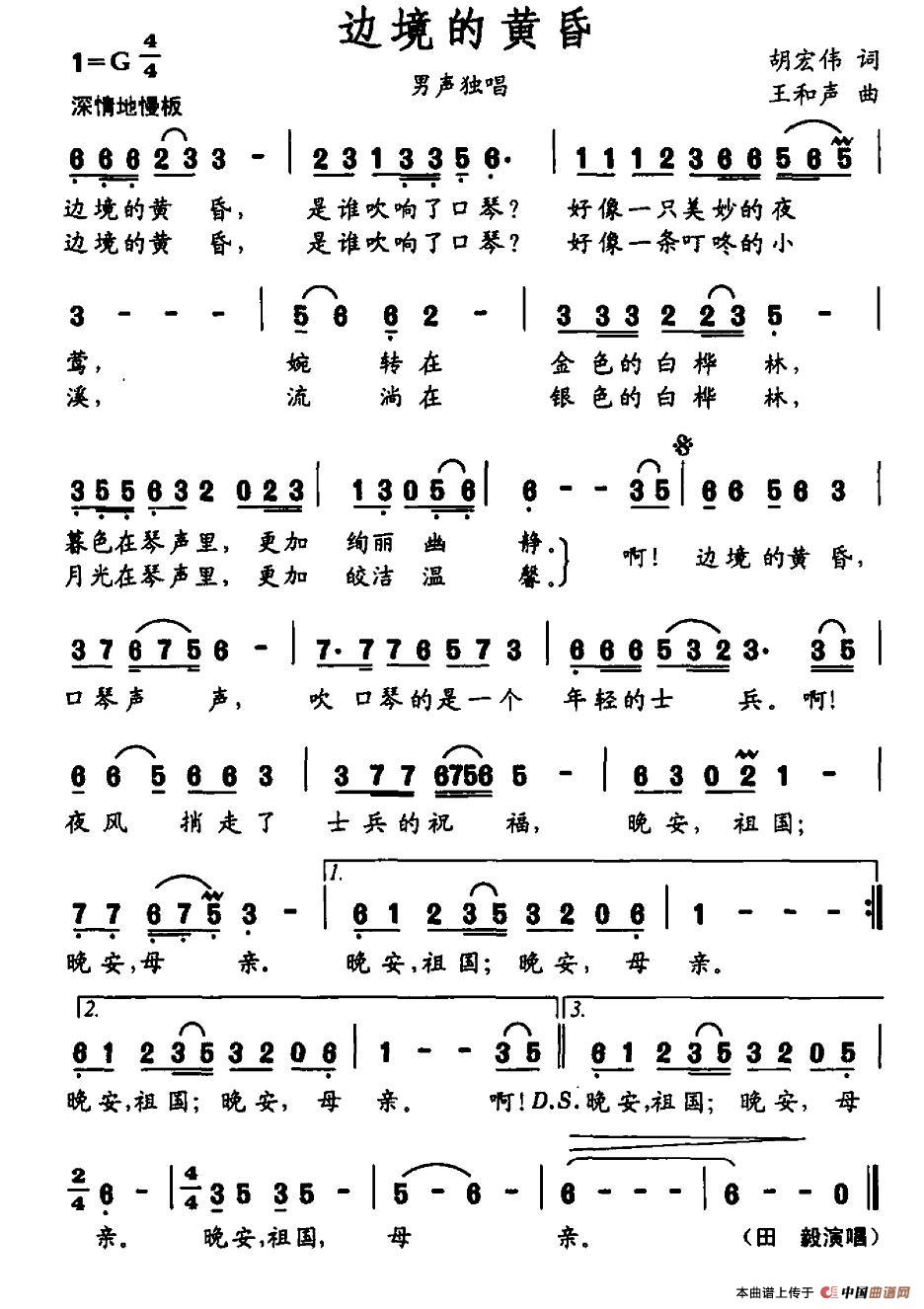 关于《边境的黄昏》曲谱的评论