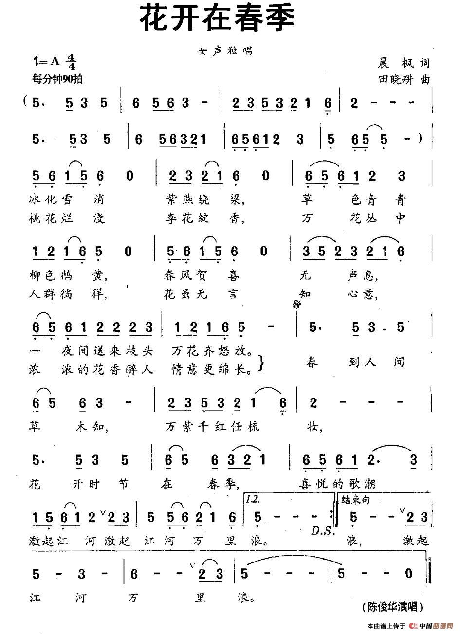 关于《花开在春季》曲谱的评论