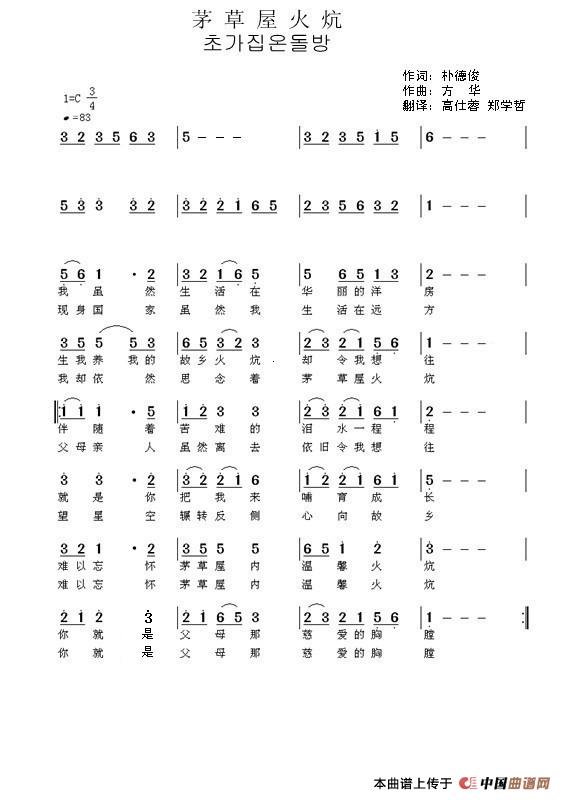 ![[朝鲜族]茅草屋火炕(초가집온돌방)(1)_原文件名:茅草屋火炕(中文歌谱).jpg](/Public/Uploads/2014/05/18/651425378557e95cb4.jpg)
