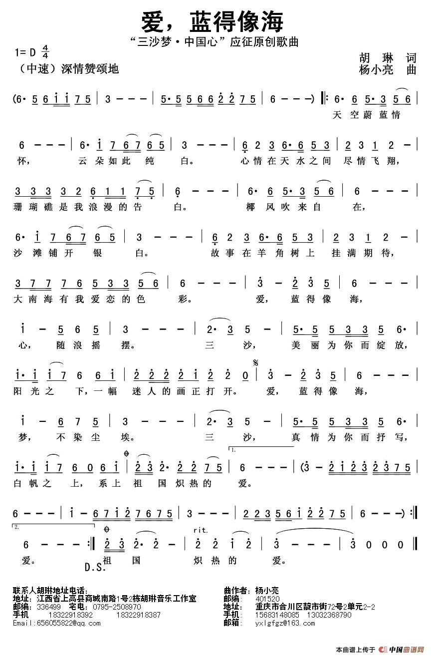 关于《爱,蓝得像海》曲谱的评论