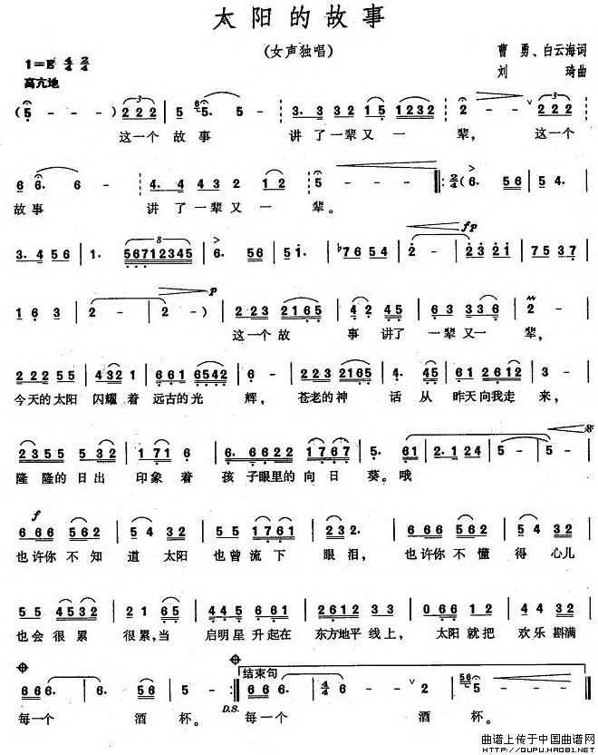 关于《太阳的故事》曲谱的评论
