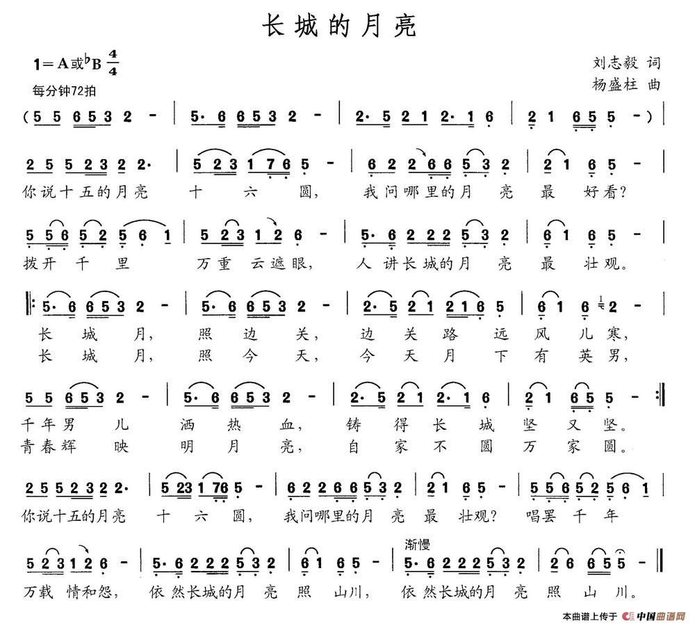 当前位置: 首页 民歌曲谱 五字歌名 长城的月亮(刘志毅词 杨盛柱曲)
