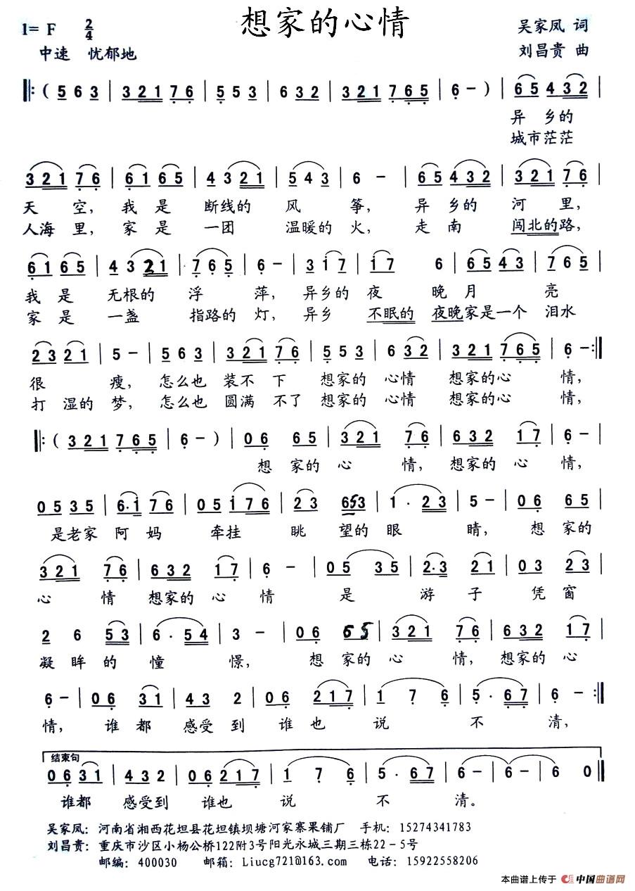 当前位置: 首页 民歌曲谱 五字歌名 想家的心情