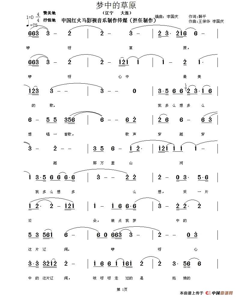 梦中的草原 (韩平词 王保华 李国庆曲)