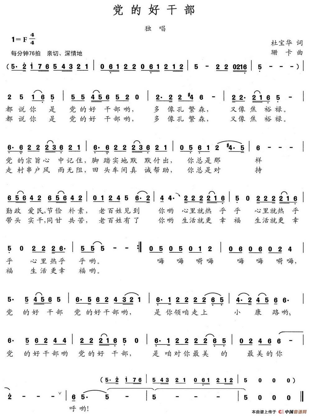 关于《党的好干部》曲谱的评论