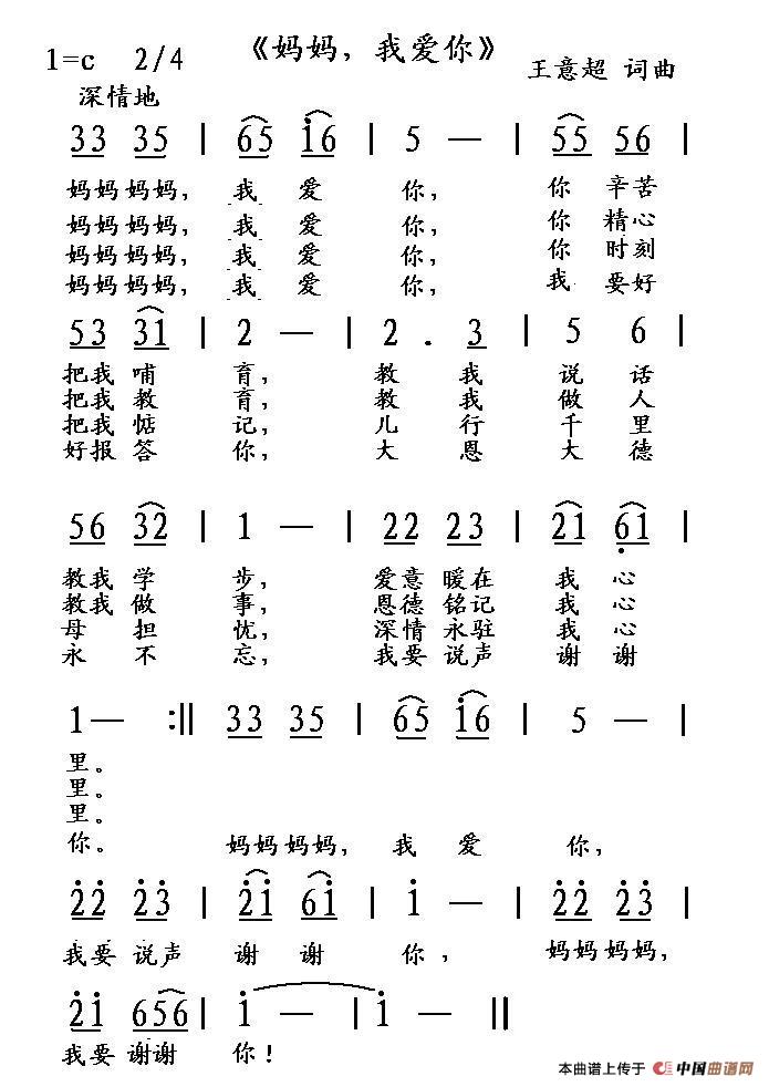 关于《妈妈,我爱你》曲谱的评论