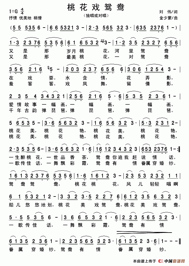 致谢:《中国曲谱网》衷心感谢作者老师馈赠原版歌谱!