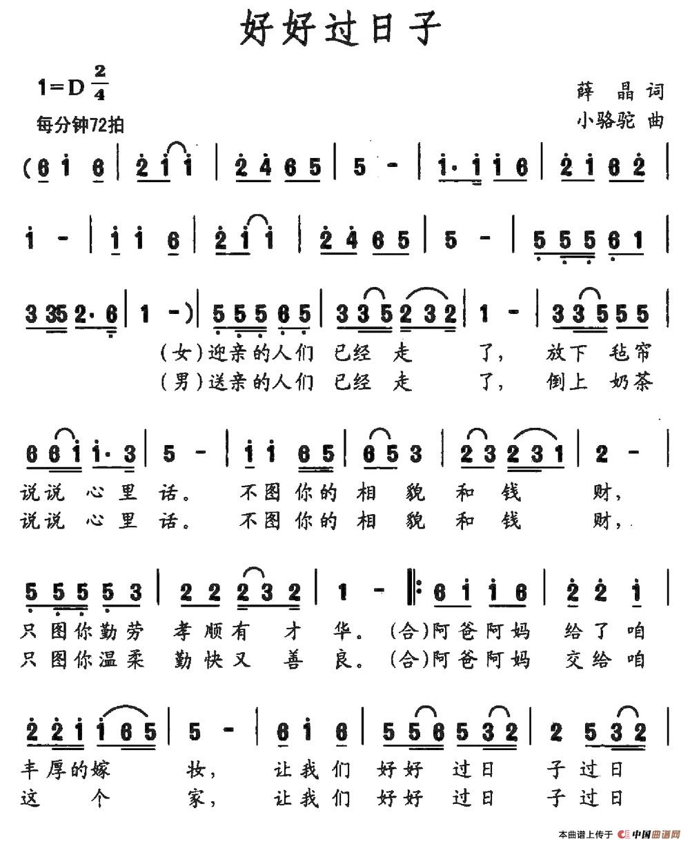 关于《好好过日子》曲谱的评论