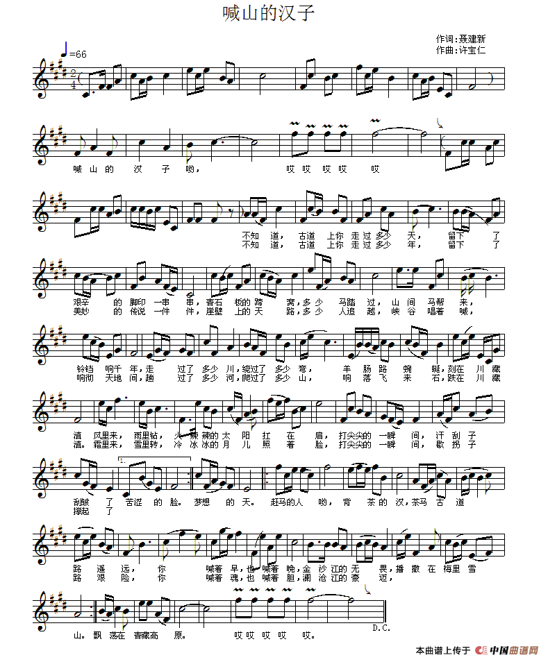 关于《喊山的汉子》曲谱的评论