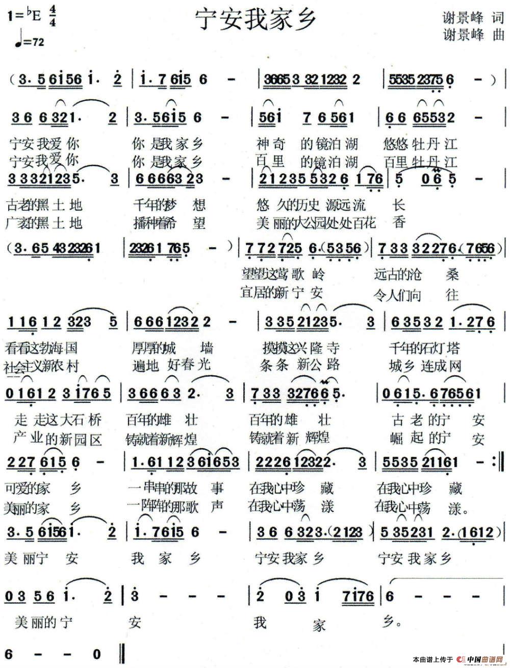 关于《宁安我家乡》曲谱的评论