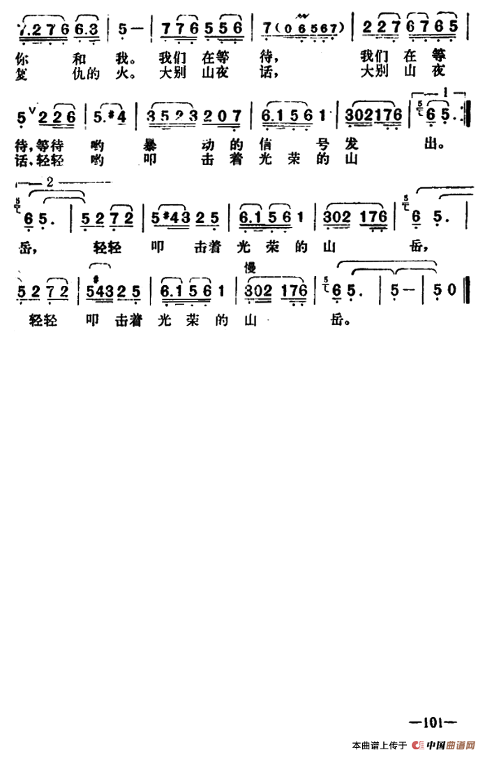 关于《大别山夜话》曲谱的评论