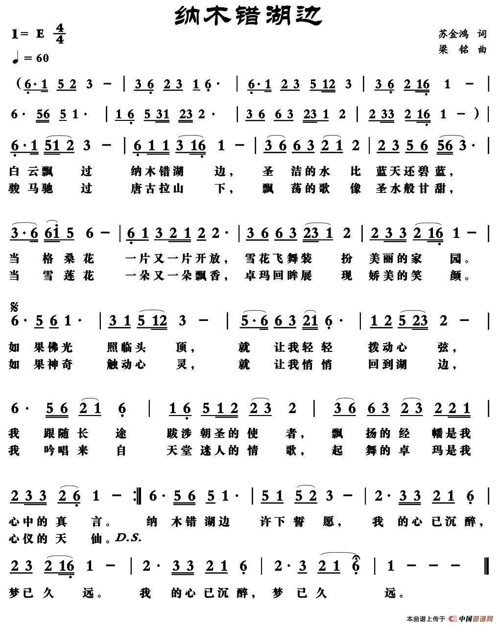 关于《纳木错湖边》曲谱的评论