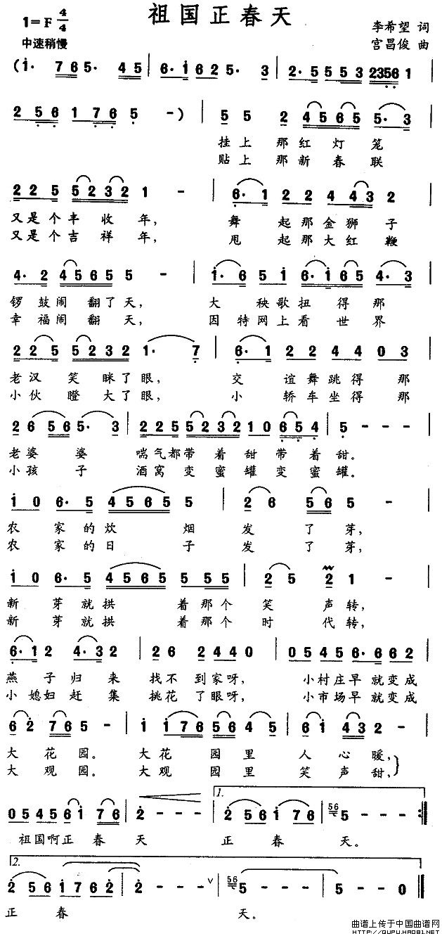 关于《祖国正春天》曲谱的评论