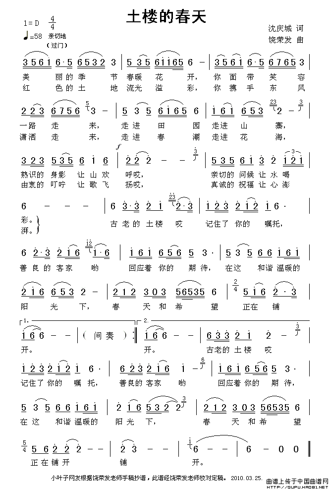 关于《土楼的春天》曲谱的评论