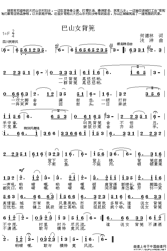关于《巴山女背篼》曲谱的评论