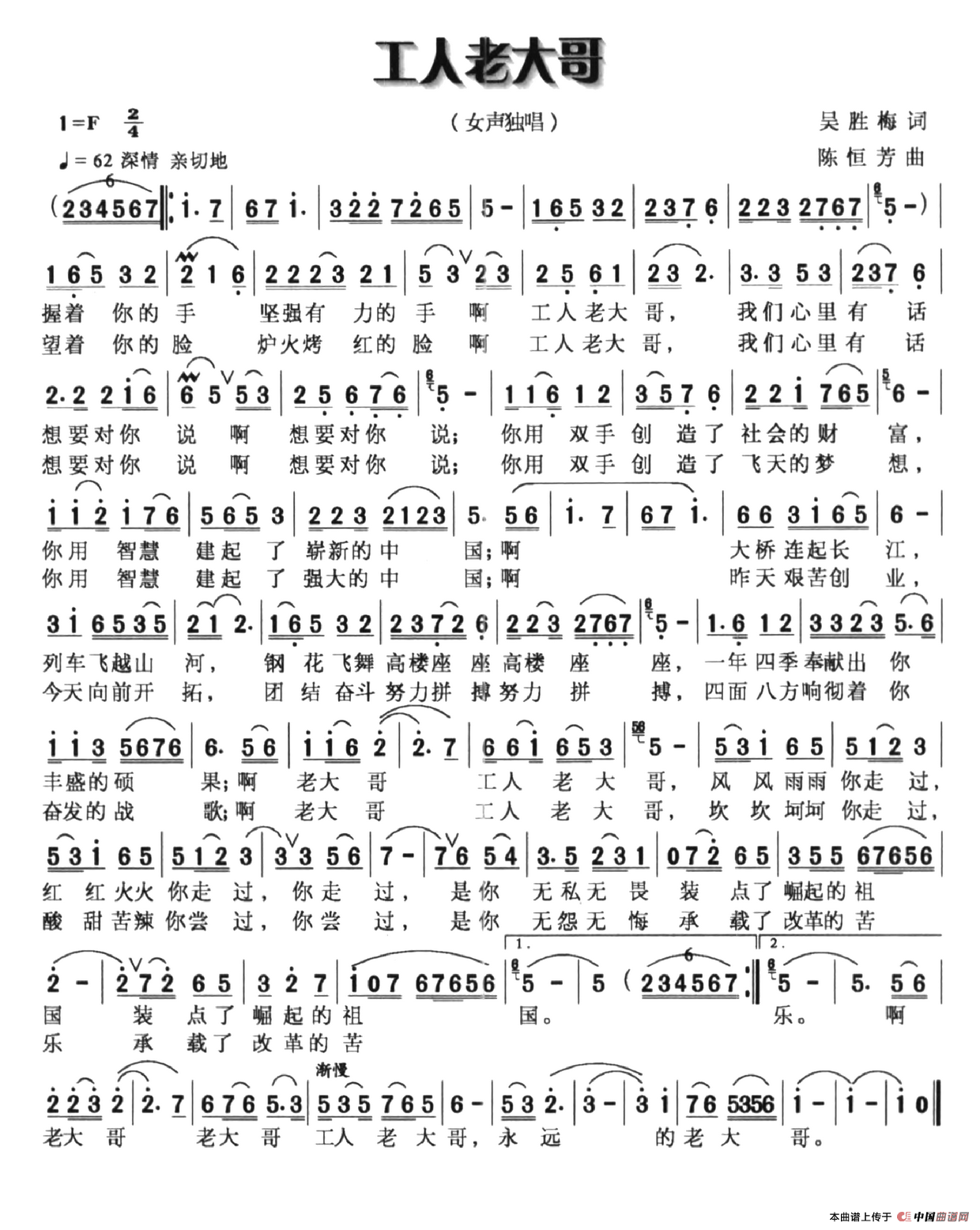工人老大哥(吴胜梅词 陈恒芳曲)