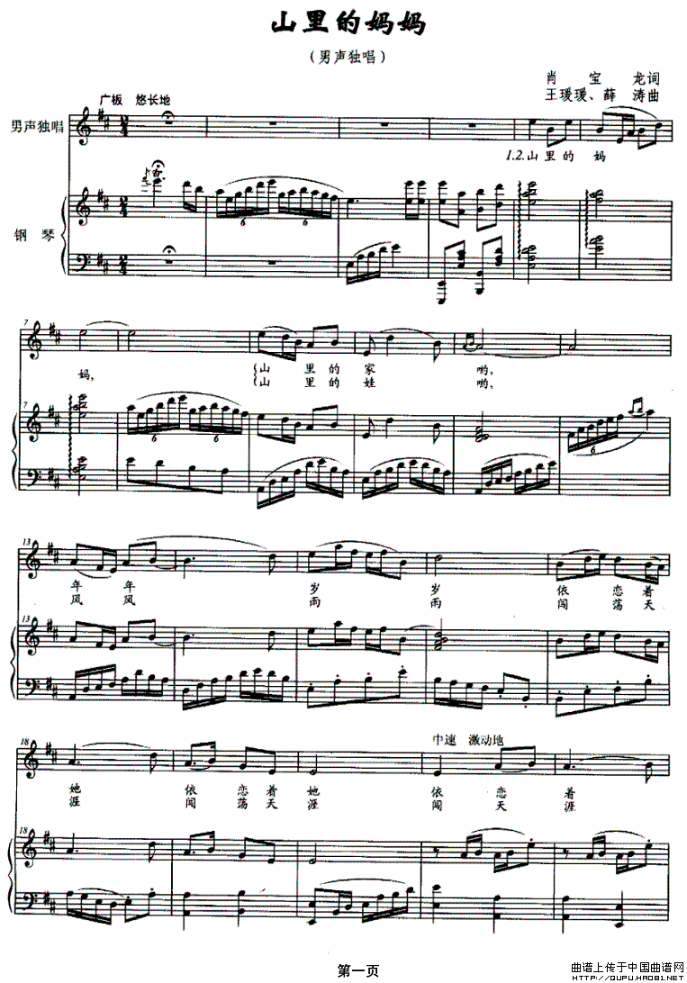 关于《山里的妈妈》曲谱的评论