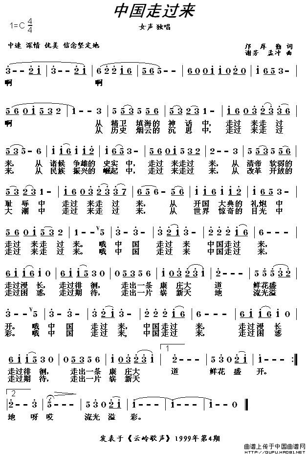 关于《中国走过来》曲谱的评论