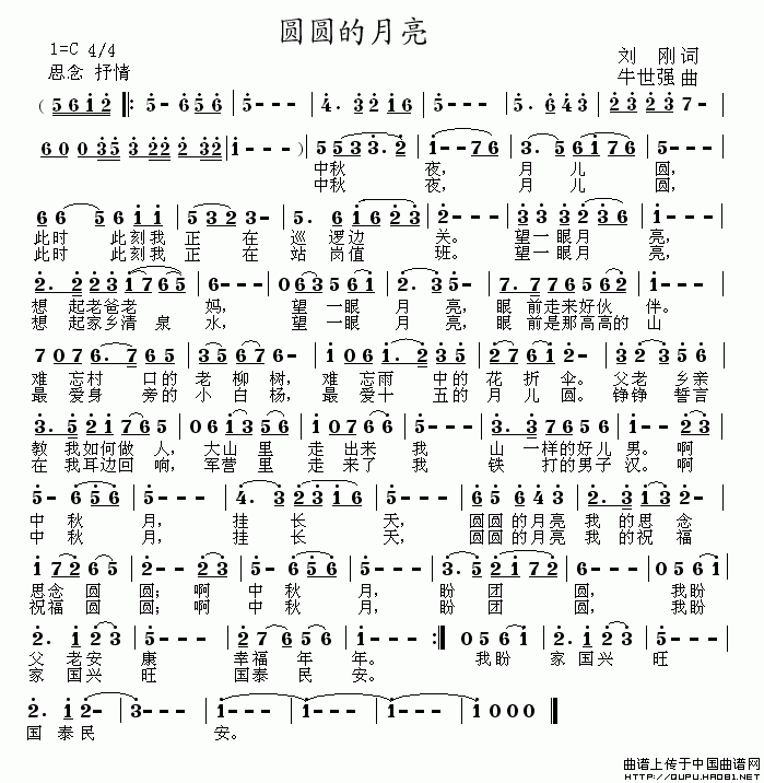 关于《圆圆的月亮》曲谱的评论