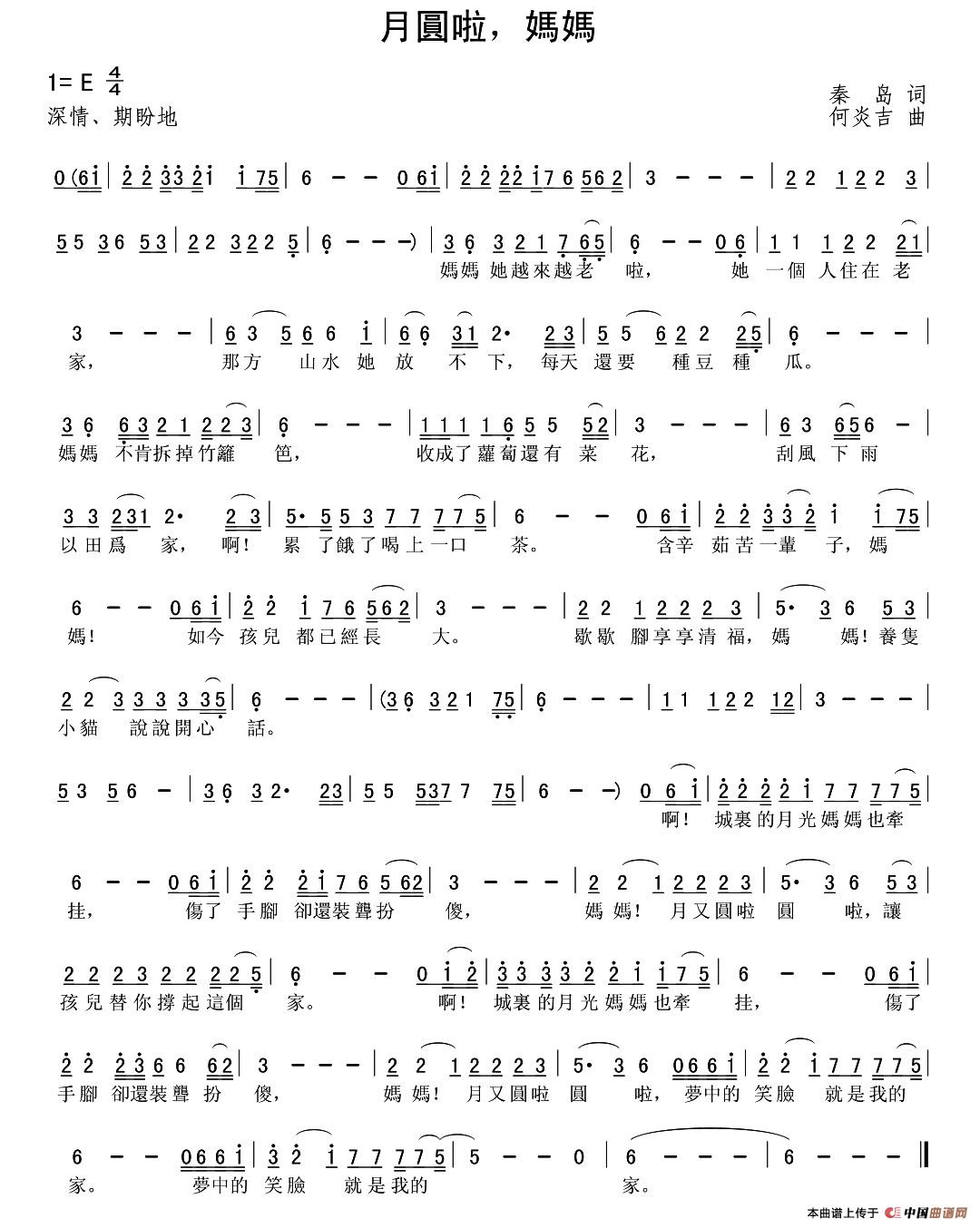 关于《月圆了,妈妈》曲谱的评论