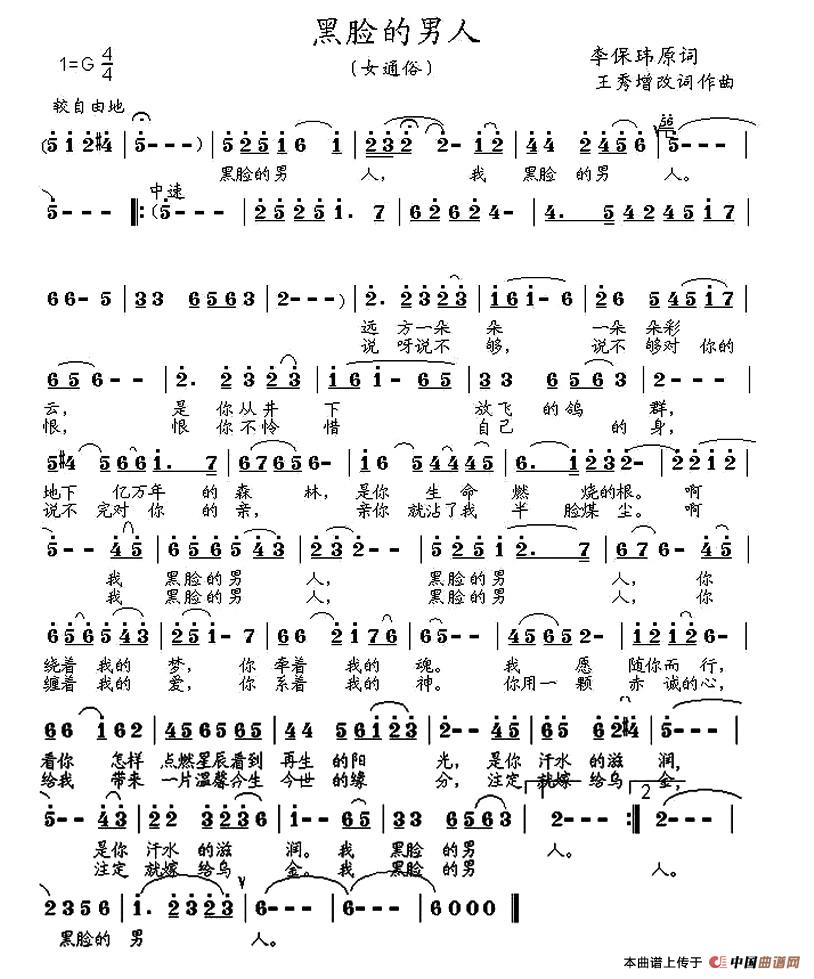 关于《黑脸的男人》曲谱的评论