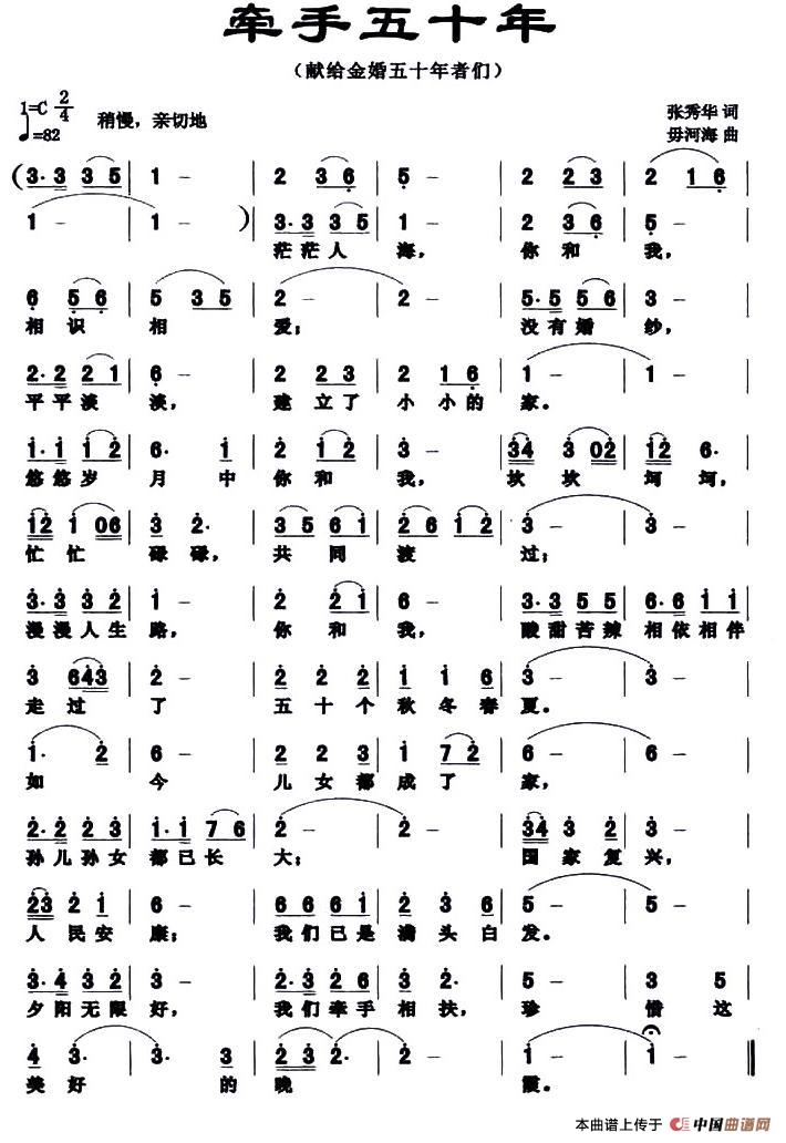 关于《牵手五十年》曲谱的评论