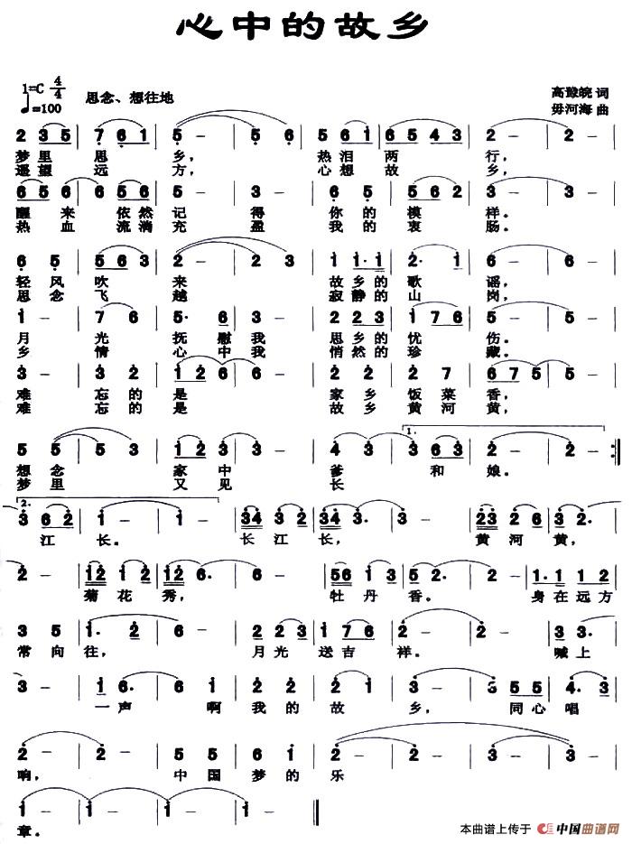 当前位置: 首页 民歌曲谱 五字歌名 心中的故乡(高豫皖词 毋河海曲)